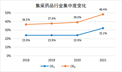 图2 2018-2021年集采品种行业集中度变化