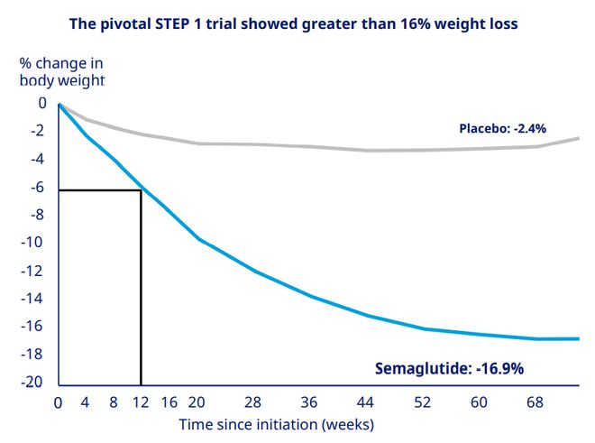 安进虽然是减肥市场的后来者,但实力不容小觑。礼来的GLP-1R/GIPR双重激动剂Tirzepatide在第12周平均减重约8%,在72周时减重23%。而诺和诺德的司美格鲁肽Wegovy治疗12周后,肥胖或超重患者的平均体重减轻6%左右;68周时减重17-18%。