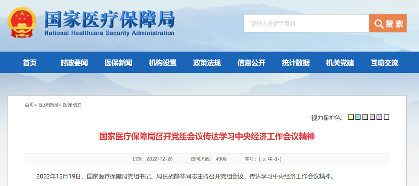 12月20日,国家医保局官网发布《国家医疗保障局召开党组会议传达学习中央经济工作会议精神》,该文显示,2022年12月19日,国家医疗保障局党组书记、局长胡静林同志主持召开党组会议,传达学习中央经济工作会议精神。其中会议提及:要做好岁末年初医保工作,稳步推进种植牙耗材集中采购,完成2022年度医保药品目录调整,为人民群众送上暖心的医保新春礼物。