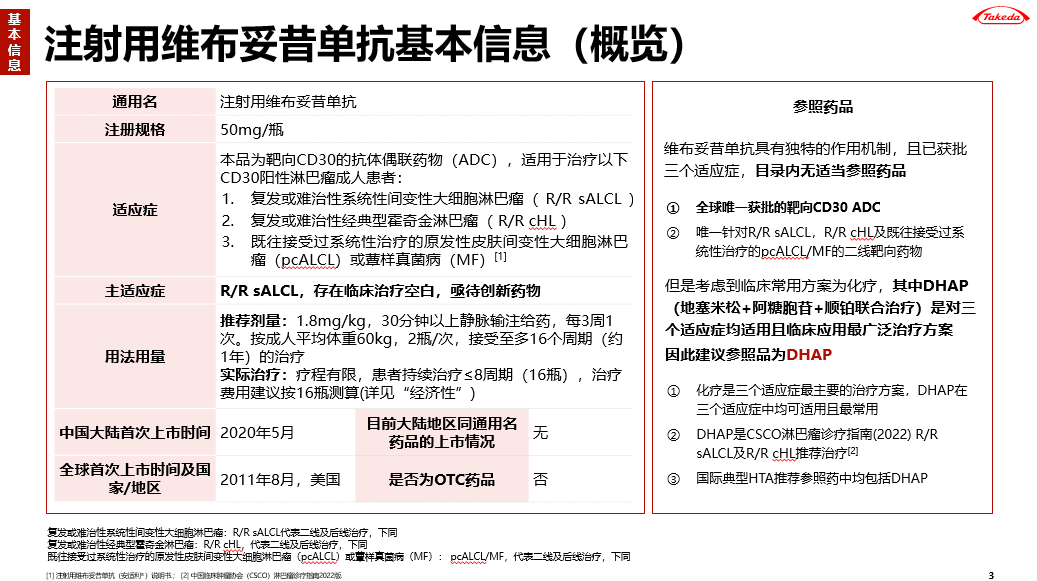 武田旗下注射用维布妥昔单抗(商品名:安适利)是全球唯一获批的靶向CD30 ADC。该药于2020年5月获NMPA批准,用于成人CD30阳性的复发或难治性系统性间变性大细胞淋巴瘤(sALCL)和经典型霍奇金淋巴瘤(cHL)的治疗,成为国内第二款ADC。7月23日,该药在中国开出首张处方正式上市,零售价22075元/盒。2021年4月,维布妥昔单抗获批针对皮肤T细胞淋巴瘤的两项新适应证
