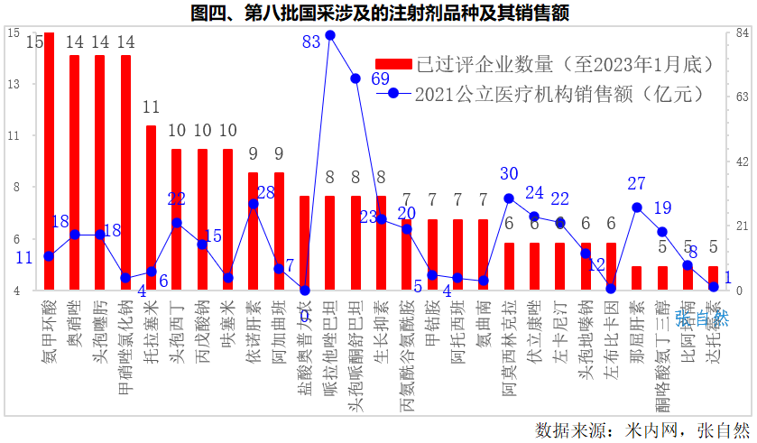 为此,本文将从过评进展、涉及品种、企业、第八批及往期国采涉及的注射剂数量及降幅等五个方面对注射剂情况做出多维解析。