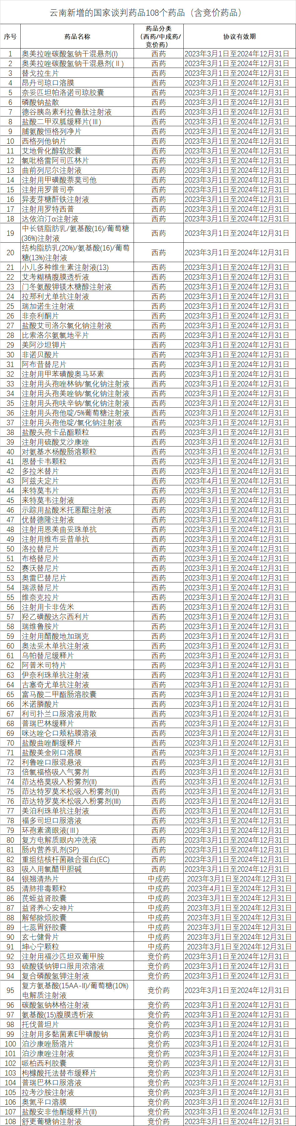 附2:云南新增的108个国家谈判药品