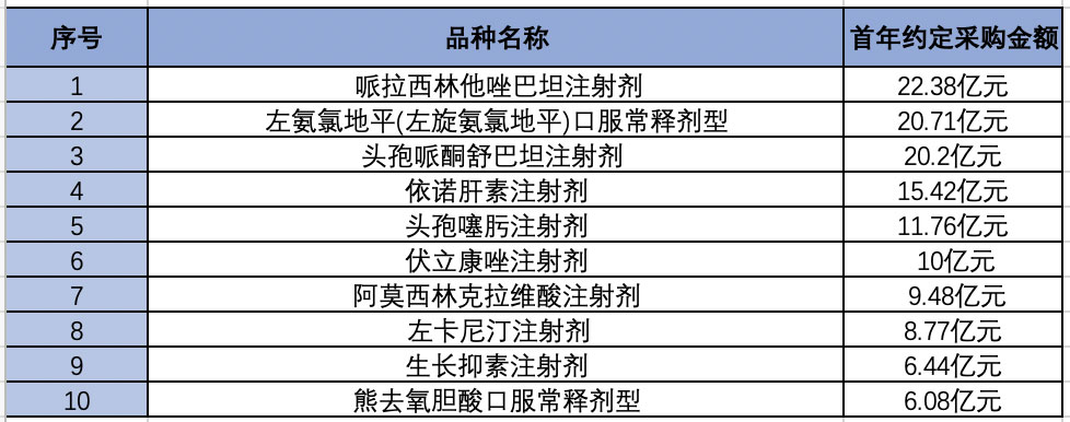 图:第八批国采首年约定采购金额TOP10产品