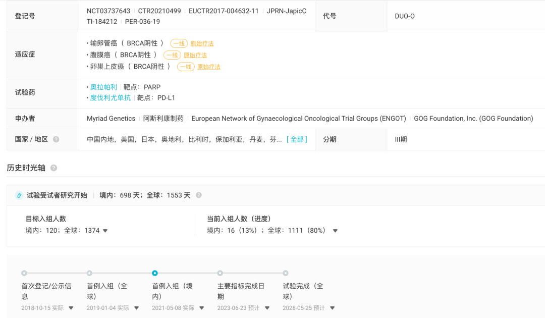 4 月 5 日,阿斯利康公布了奥拉帕利一线治疗卵巢癌的 III 期临床 DUO-O 试验中期分析结果。