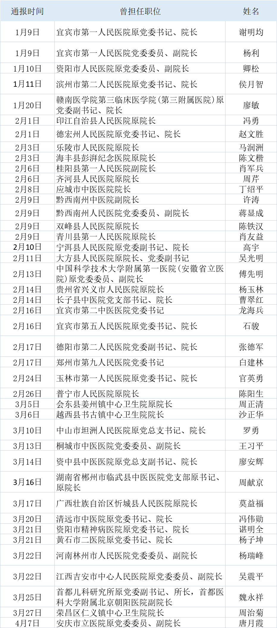 部分地区医疗系统遭彻查,多位医院“一把手”被通报。
