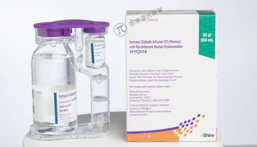 HyQvia由人正常免疫球蛋白(IG,10%)和重组人透明质酸酶(hyaluronidase)组成的皮下免疫球蛋白疗法,透明质酸酶有利于IGSC的分散和吸收。HyQvia是获批用于原发性免疫缺陷症治疗的首个每月一次的皮下注射免疫球蛋白,每月仅需皮下注射一次,且在单个注射部位即可提供全部的治疗剂量。目前,大多数PI患者需在医院接受静脉输液治疗,而在HyQvia之前的皮下注射IG药物,需要每周或每2周注射一次,且每次注射时需在多个位点注射。