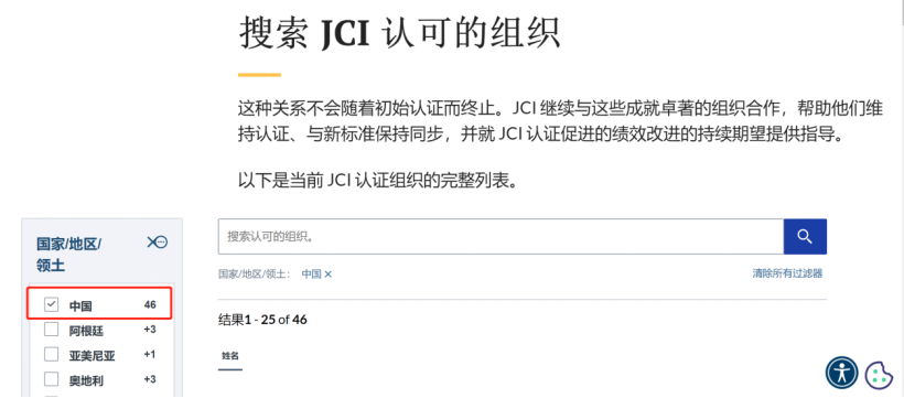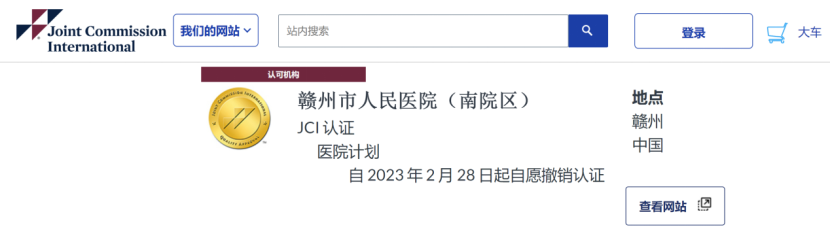 目前JCI的官网上,认证在案的中国内地医院只剩46家,其中仅有赣州市人民医院(南院区)一所公立医院,而这家医院也已在本年2月28日自愿撤销认证。