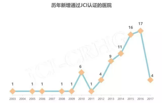 据“健康界”统计,2012-2016的5年间,JCI在中国区的认证数量甚至表现出近乎“直线式”的增长。