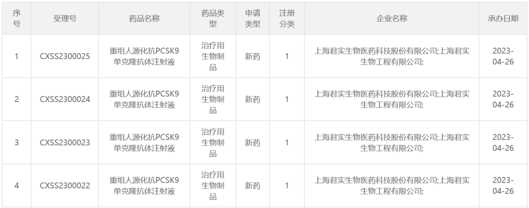 [2]君实生物JS002(抗PCSK9单抗)两项适应症上市申请获得受理. Retrieved Apr 25, 2023, from https://www.prnasia.com/story/401514-1.shtml