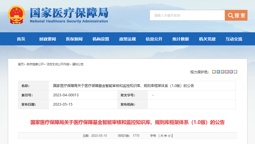 5月15日,国家医保局发布《关于医疗保障基金智能审核和监控知识库、规则库框架体系(1.0版)的公告》