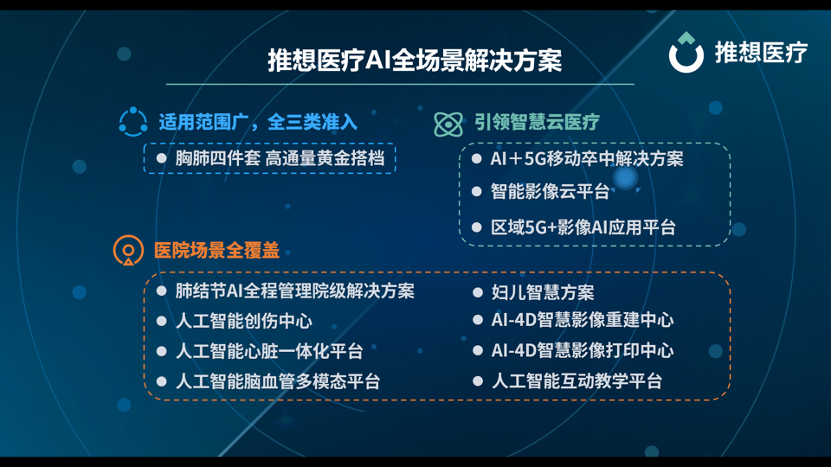 科技与医学碰撞,AI技术与医疗融合不断加深,AI技术日益成为推动智慧医疗行业发展的中坚力量。作为医疗AI的领军企业,推想医疗坚持原研创新,携四大重磅解决方案现场发布。
