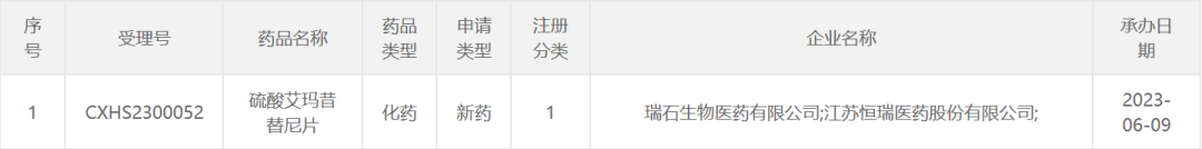 6月9日,中国国家药监局药品审评中心(CDE)官网最新公示,恒瑞医药及其子公司瑞石生物共同递交了1类新药硫酸艾玛昔替尼片的上市申请并获得受理。公开资料显示,艾玛昔替尼(SHR0302)是一款新一代JAK1抑制剂,根据其在特应性皮炎人群中积极的2期研究结果,该产品还曾被CDE纳入突破性治疗品种。