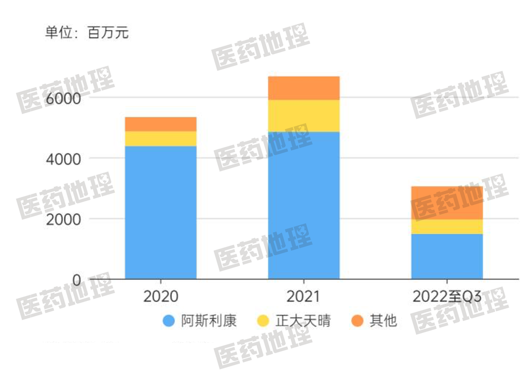 图5:布地奈德2020-2022Q3主要销售企业销售额变化图 来源:Pharma one智能药物大数据分析平台