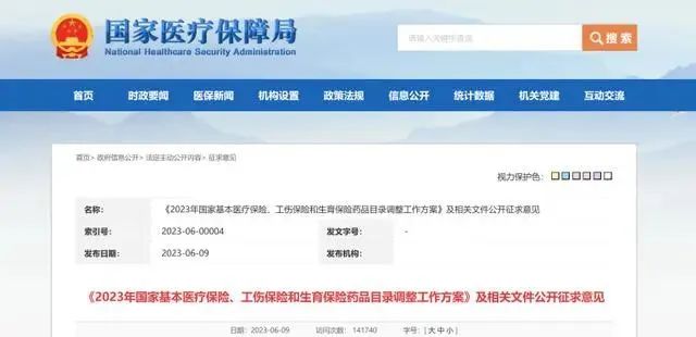 国家医保局公布了《2023年国家基本医疗保险、工伤保险和生育保险药品目录调整工作方案》征求意见稿和《2023年国家基本医疗保险、工伤保险和生育保险药品目录调整申报指南》的征求意见稿。