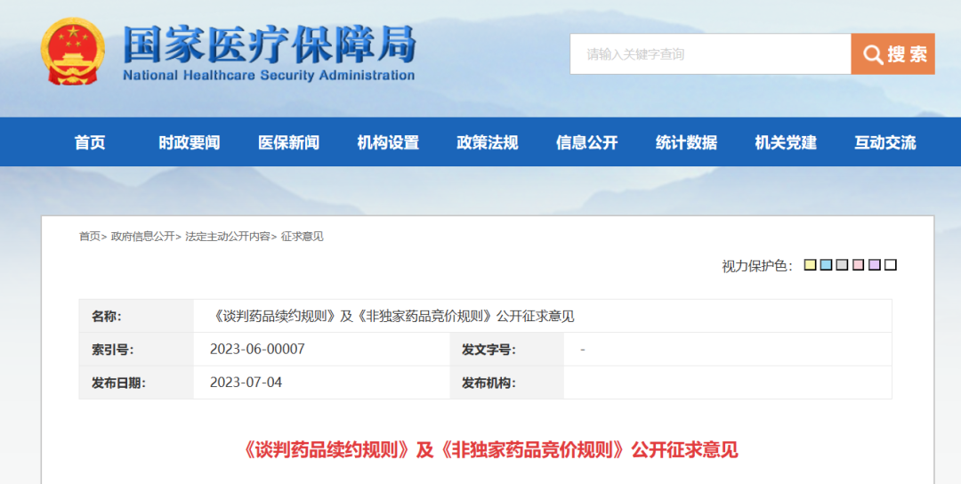 7月4日,国家医保局发布通告,结合2023年医保目录调整方案,对《谈判药品续约规则》及《非独家药品竞价规则》公开征求意见。