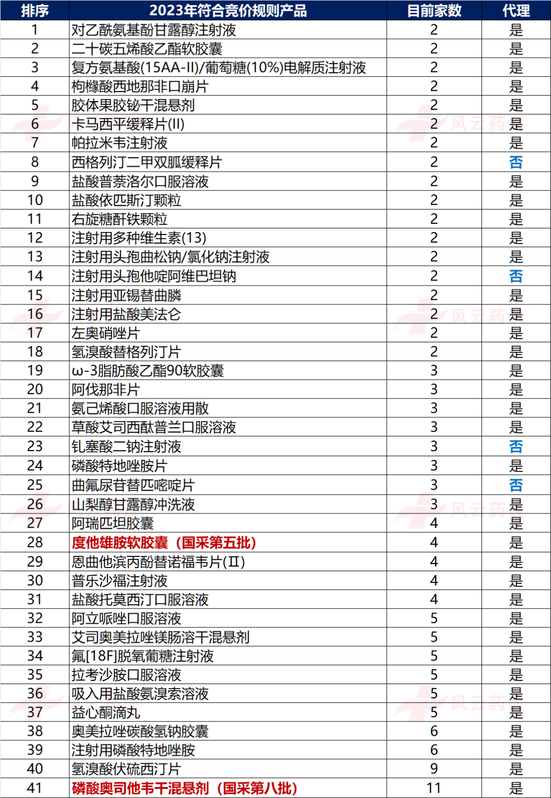 41个符合申报条件的竞价产品名单(来源:风云药谈)