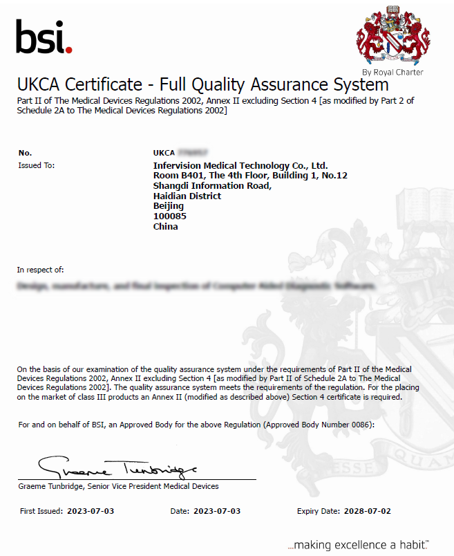 中国AI医疗公司获得的第一张肺结核UKCA认证