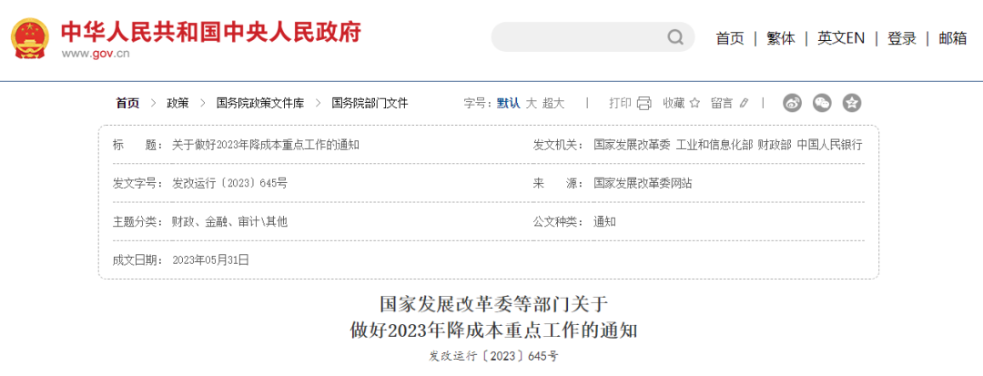6月16日国务院官网才发布《国家发展改革委等部门关于做好2023年降成本重点工作的通知》。国家发改委、工信部、财政部、人民银行等多部门联合发声,强调要加大拖欠中小企业账款清理力度。