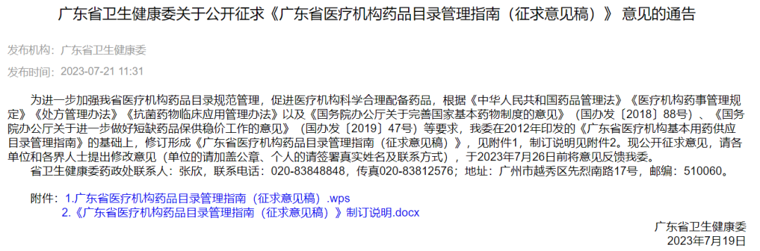 7月21日,广东省卫健委发出关于公开征求《广东省医疗机构药品目录管理指南(征求意见稿)》 (下称《指南》)意见的通告,(意见征求至7月26日)该新版《指南》删除了公立医疗机构的用药数量(三级综合1500种/二级综合1200种/其他600种)的限制。