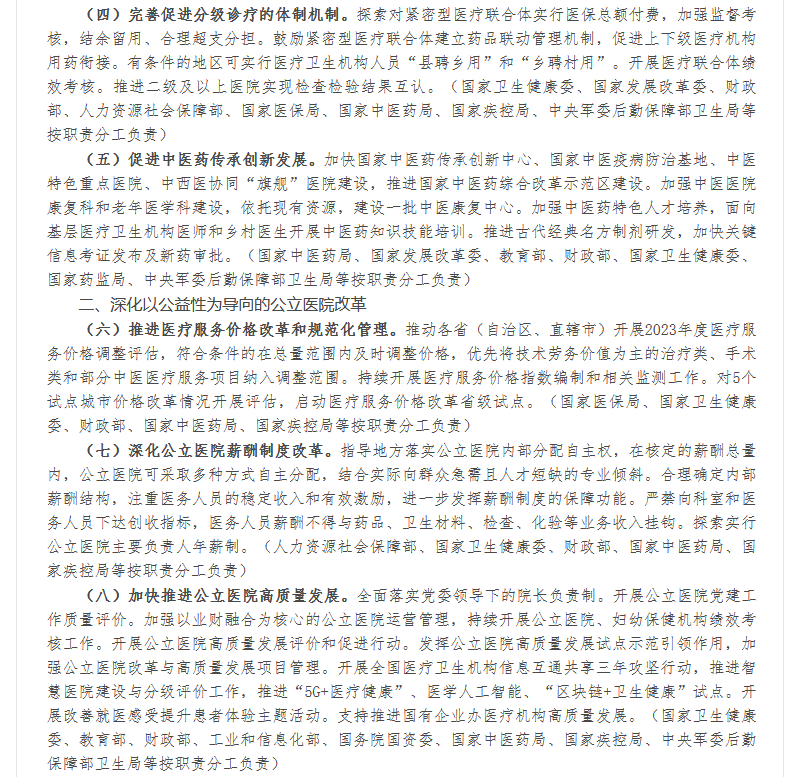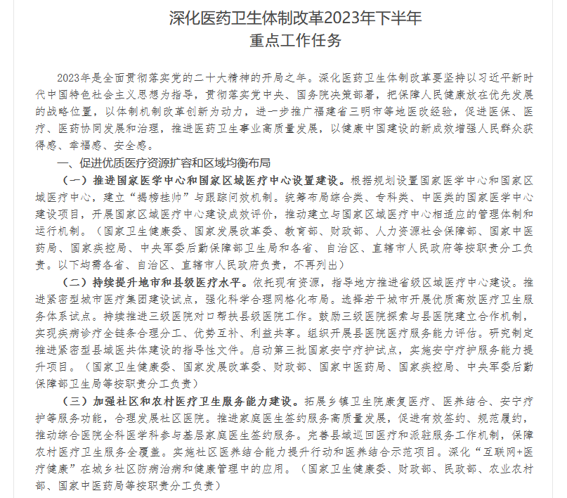 附:《深化医药卫生体制改革2023年下半年重点工作任务》原文
