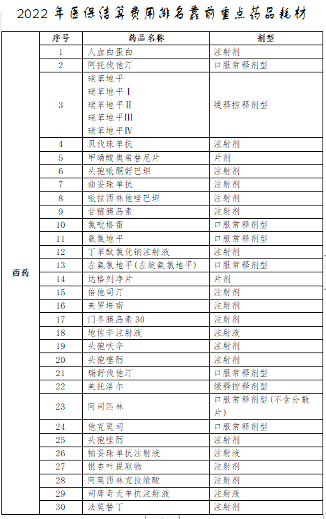 附:2022年医保结算费用排名靠前重点药品耗材