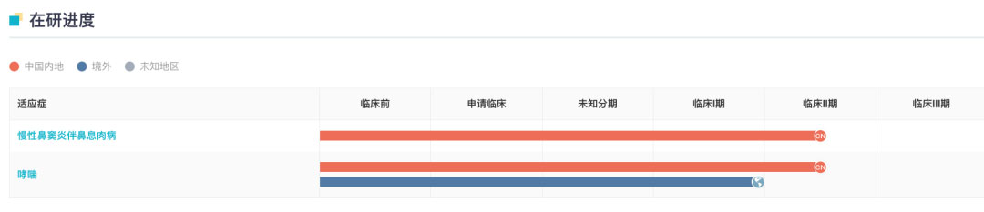 2022 年 Tezspire 全球销售额合计约为 1.74 亿美元;2023 年第一季度 Tezspire 全球销售额合计约为 1.07 亿美元。其他同类产品在国内外尚处于临床试验阶段,适应症以哮喘为主。
