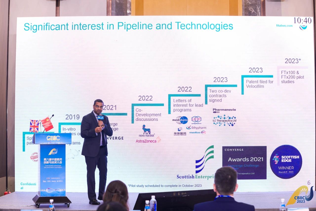由中国医药创新促进会(以下简称“中国药促会”)与英国商业贸易部共同主办的第八届中国医药创新与投资大会(以下简称“创投大会”)英国项目路演专场于9月25日在苏州金鸡湖国际会议中心成功召开。来自英国的10家不同企业Artios Pharma、Fitabeo Therapeutics、Cizzle Biotechnology、Charles River、Woodley BioReg Ltd.、Actigen、Crystec、Phastar、Congenica及Prolmmune的负责人在肿瘤治疗领域、免疫性疾病、健康老龄化等细分领域进行了观点分享并于现场观众进行深度对话,来推动中英医药创新发展,深化新领域、新格局下的全球资本与医药创新合作。