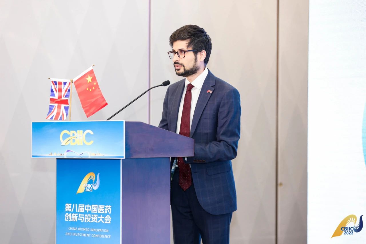 英国驻华大使馆商业贸易部生命科学与医疗服务参赞致辞英国驻华大使馆商业贸易部生命科学与医疗服务参赞Rahul Agarwal (安睿辉)受邀出席英国项目路演专场并致辞,他表示:“去年是中英建立大使级外交关系50周年,这50年来,中英双方在各个领域的合作都达成了重要共识。英国拥有世界上第三大生命科学产业集群及先进的创新技术,现在我们站在新的历史起点,希望通过英国在生命科学领域的优势,来推动与中国在该领域的发展,协助中国企业走向国际”。