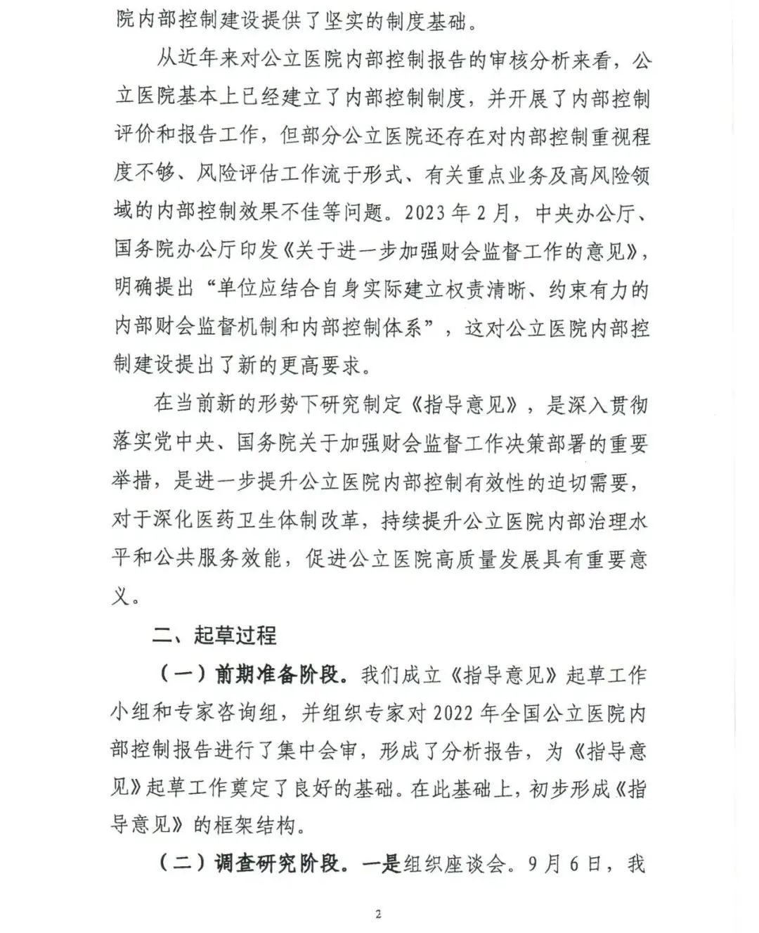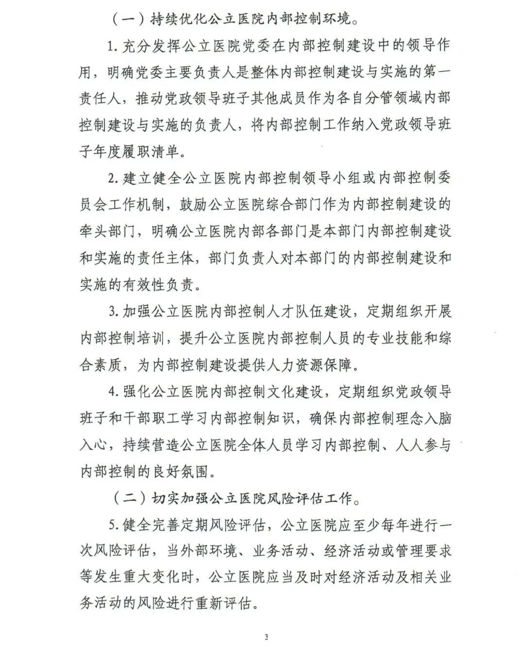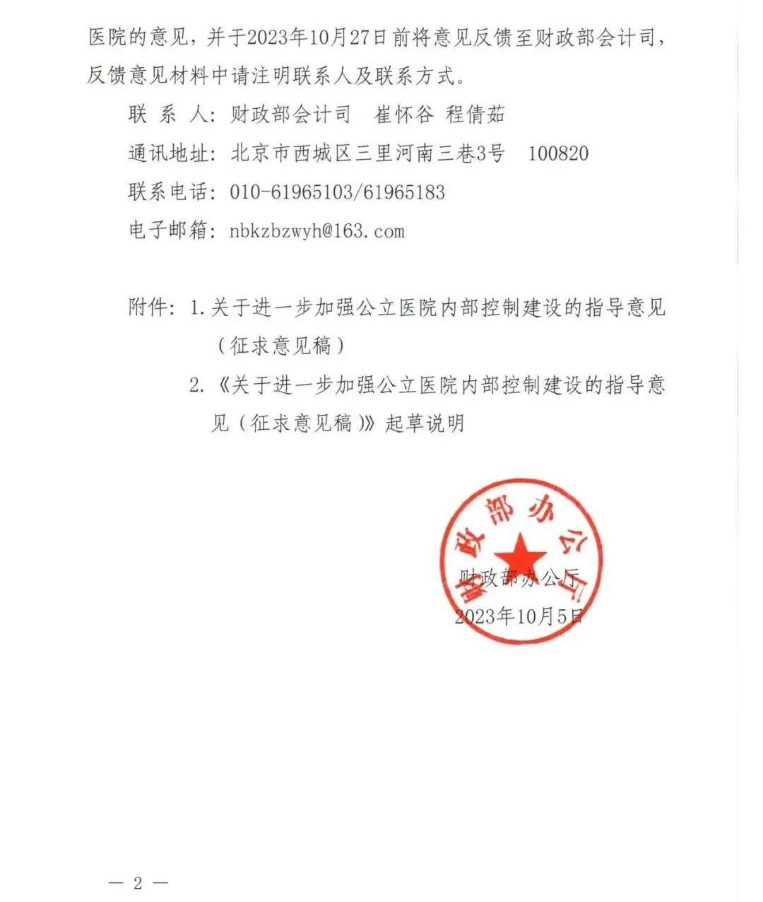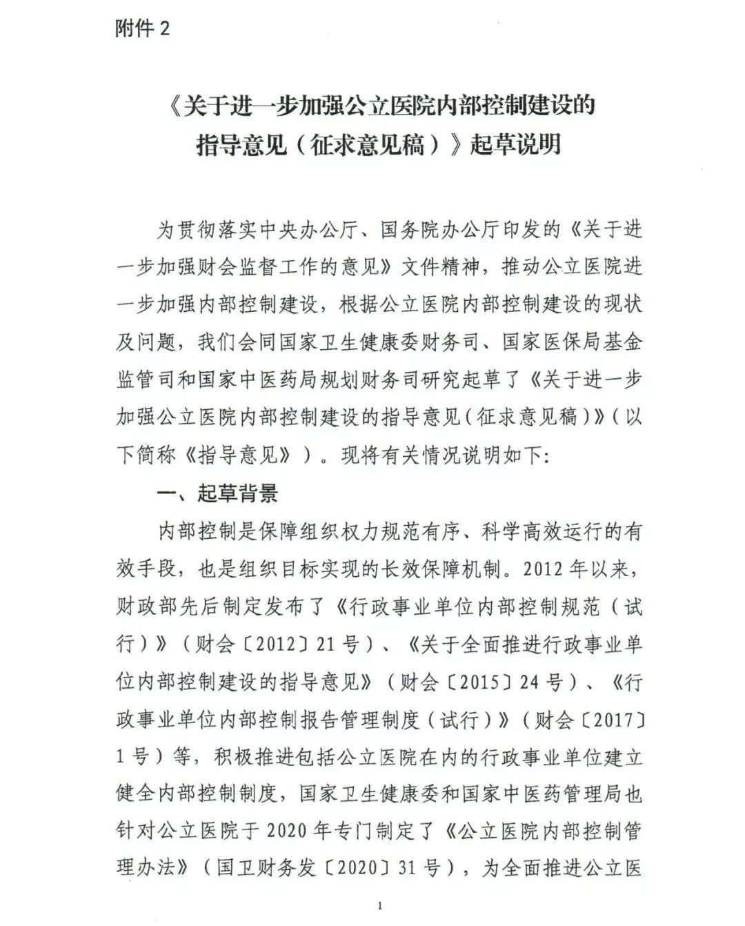 近日,财政部公布《关于进一步加强公立医院内部控制建设的指导意见(征求意见稿)》,提出主要5大任务和30项措施,推动公立医院加强内部控制建设,合理保证公立医院经济活动合法合规、资产安全和使用有效、财务信息真实完整,有效防范舞弊和预防腐败,提高资源配置和使用效益。