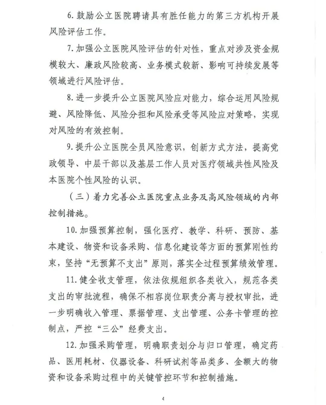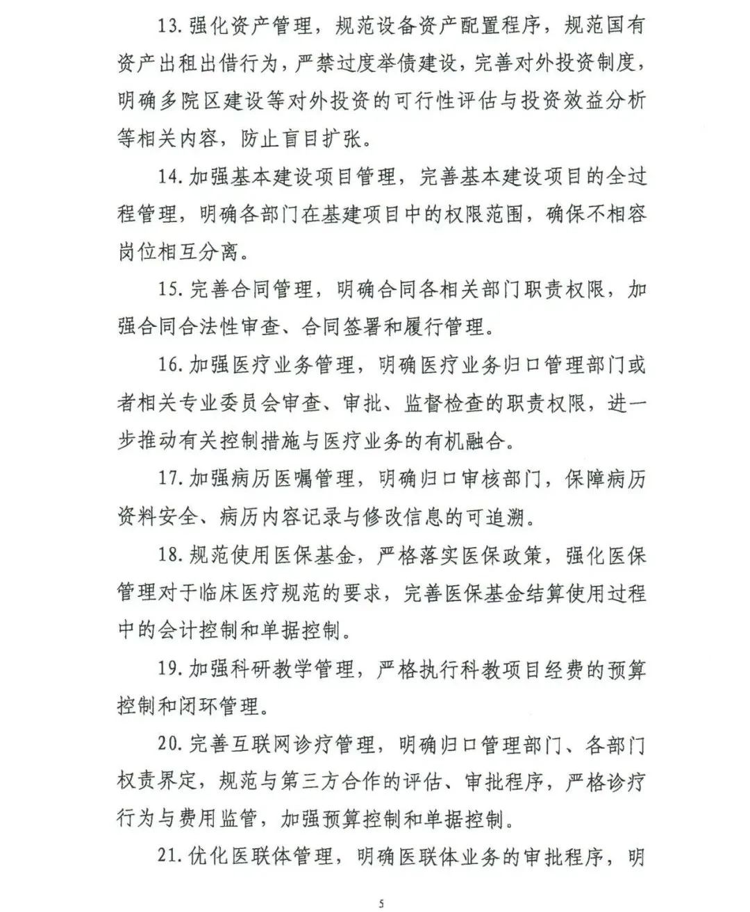 第三任务,着力完善公立医院重点业务及高风险领域的内部控制措施,共12项措施;