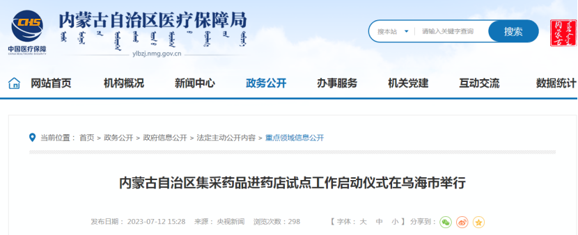 今年7月,内蒙古医保局也发布公告称,全区“集采药品进药店”启动仪式在乌海市举行。此次工作将按照“试点先行、以点带面、整体推进”的原则,确定4家连锁药店的81个门店为集采药品定点药店,确保集采药品进药店“零差价”销售。