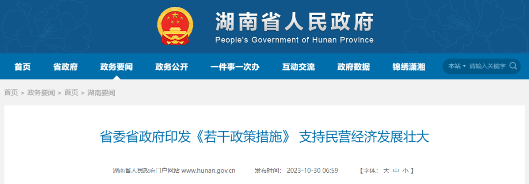 10月30日 ,湖南省人民政府印发《关于支持民营经济发展壮大的若干政策措施》(以下简称《措施》),释放整治机关、事业单位拖欠民营企业账款强烈信号。