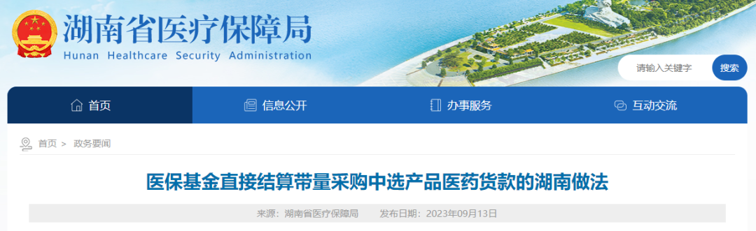 9月13日,《医保基金直接结算带量采购中选产品医药货款的湖南做法》一文下发,针对医药回款问题,湖南省医保局表态: