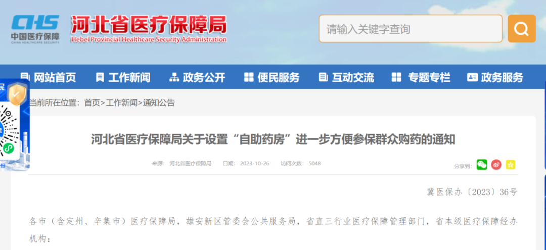 近期,河北省医保局发布了《关于设置“自助药房”进一步方便参保群众购药的通知》(以下简称《通知》),旨在进一步发挥门诊保障定点药店功能,切实解决参保群众购药方面的实际问题。