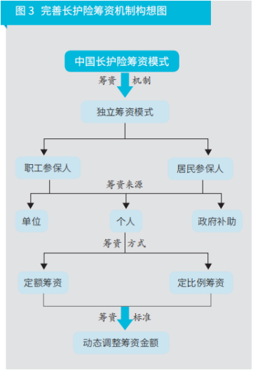 为此建议,按照国家政策提出的“坚持独立运行,着眼于建立独立险种,独立设计、独立推进”要求,明确长护险独立险种的地位,由依赖医保基金筹资模式逐步向独立筹资模式转变,建立筹资标准动态调整机制,借鉴基本医保筹资做法,建立符合中国国情的长护险筹资体系(见图3)。