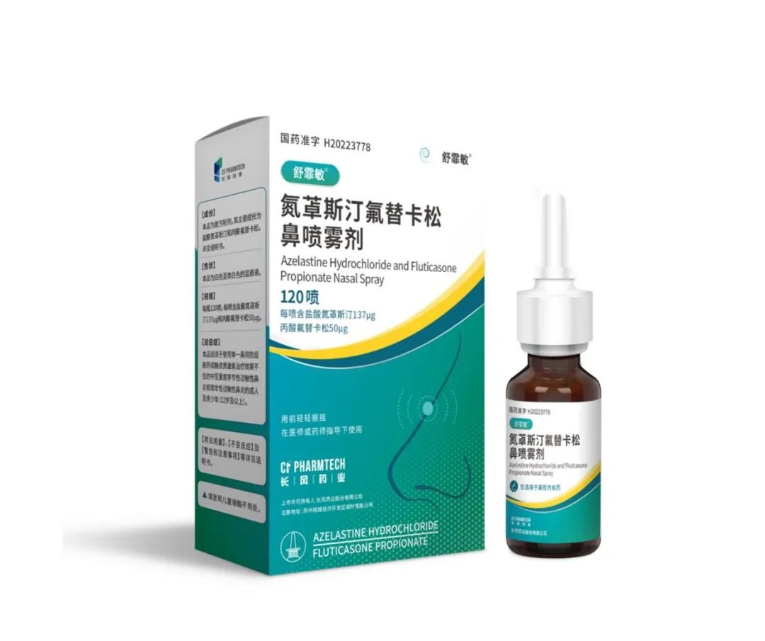 近日,长风药业股份有限公司(以下简称:“长风药业”)研制开发的重磅产品舒霏敏®(国药准字:H20223778,通用名:氮䓬斯汀氟替卡松鼻喷雾剂,规格为每瓶120喷,每喷含盐酸氮䓬斯汀137μg和丙酸氟替卡松50μg)顺利通过本轮国家医保谈判,成功进入2023版国家医保目录。