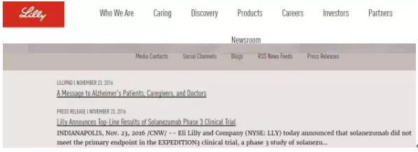 然而,本周三上午,礼来官方宣布,Solanezumab的第三个临床试验EXPEDITION3没有达到预期结果。根据阿尔茨海默病认知评估量表分析,Solanezumab给轻度阿尔茨海默病患者带来的认知衰退减慢,与安慰剂带来的结果没有显著差异。