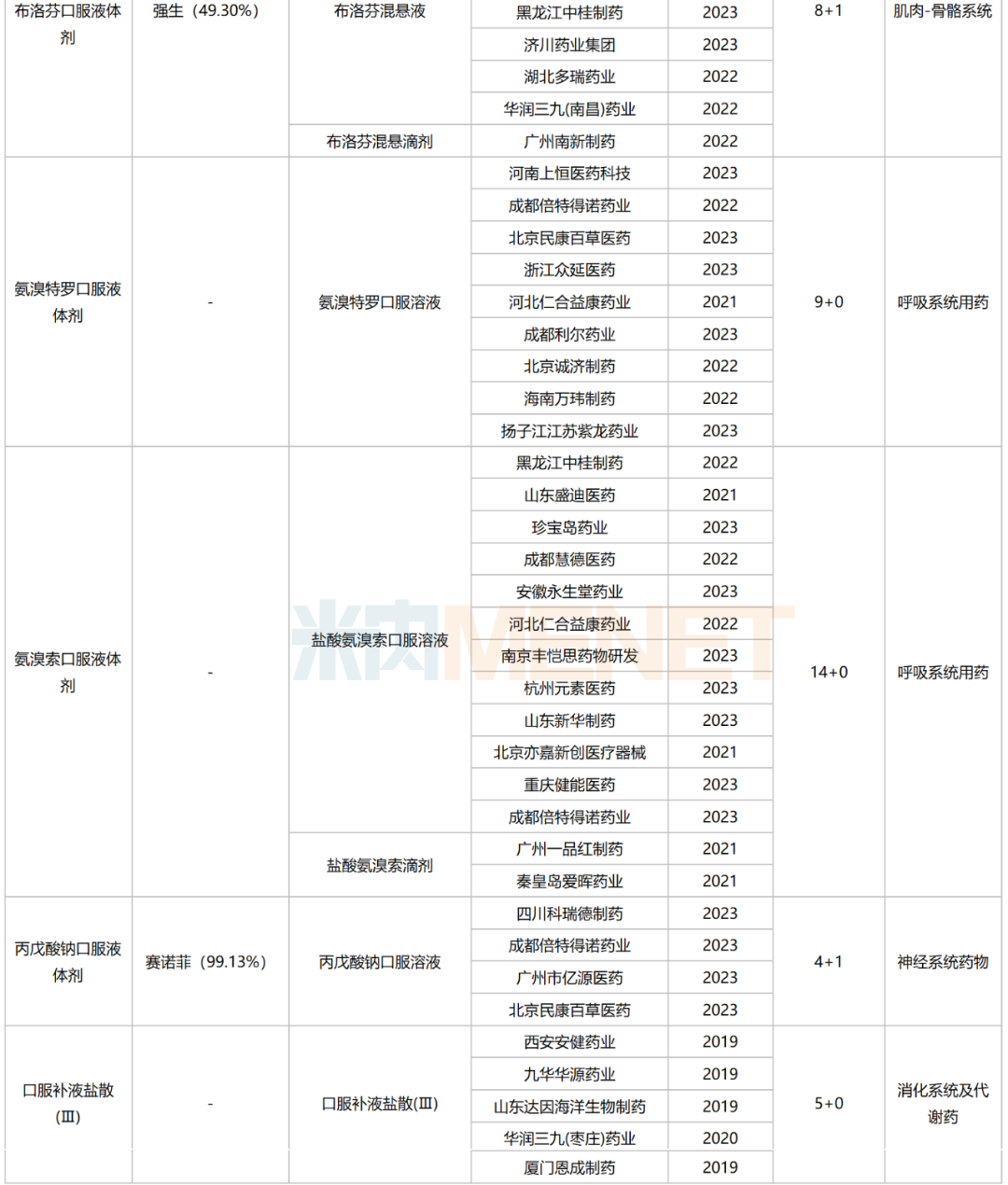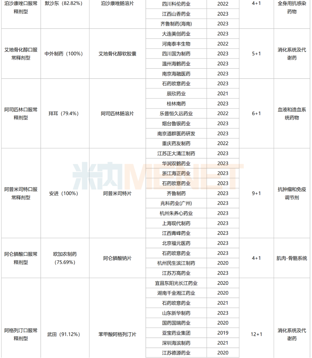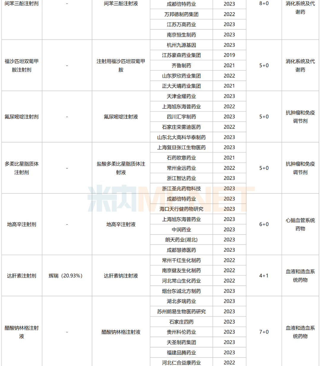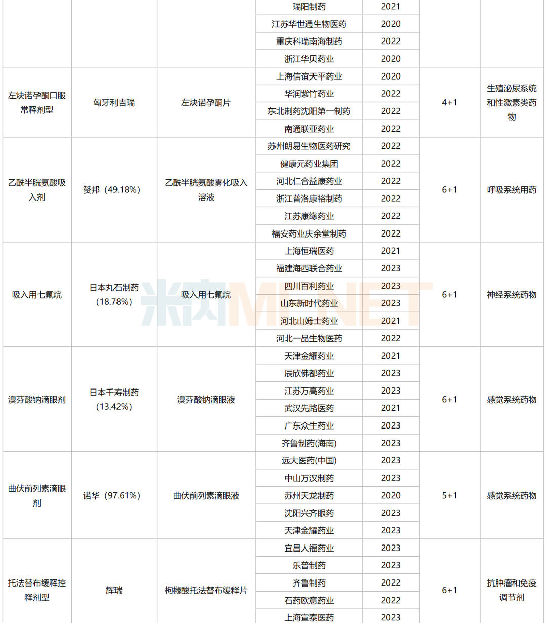 附:符合申报条件企业数达5家及以上且未纳入集采的化药(图源/数据:米内网;数据统计截至12月8日)