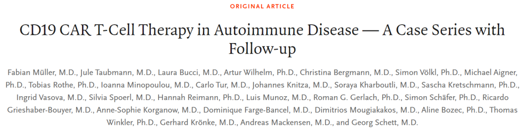 今日,顶尖医学期刊《新英格兰医学杂志》(NEJM)发表一项具里程碑意义的研究成果。首批接受CAR-T疗法的15位严重自身免疫疾病患者于中位随访时间为15个月期间,皆持续维持缓解或症状大幅减轻,并已停止所有免疫抑制与抗炎药物的使用。发布于NEJM的评论更称这是项“标志性的发现”。