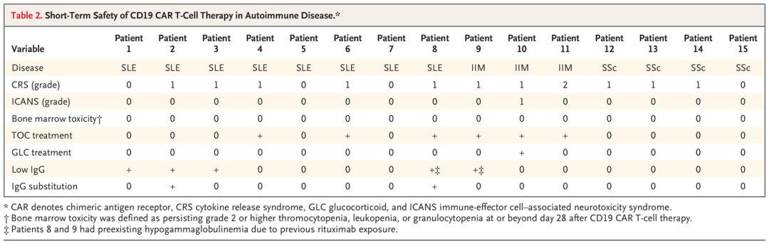 ▲接受CAR-T疗法自身免疫疾病患者的安全性结果(图片来源:参考资料[1])