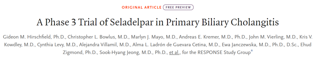 日前,CymaBay Therapeutics宣布其在研药品seladelpar于RESPONSE临床3期试验用以治疗成人原发性胆汁性肝硬化(PBC)的结果发布于《新英格兰医学杂志》(NEJM)。分析显示,试验达成主要终点,接受seladelpar治疗患者在减少胆汁淤积和肝损伤方面取得了快速且持续的改善。