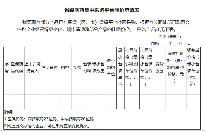 通知要求相关企业登录招采子系统查看本企业涉及产品,在浙江省挂网价格(含供应价格)高于监测价的产品,企业应按不高于该产品监测价下调我省挂网价格;如对监测价有异议,请如实填写《企业价格自查表》(见下表),加盖企业公章后上传至系统。逾期未操作的,将视同同意按监测价调整为浙江省挂网价格。