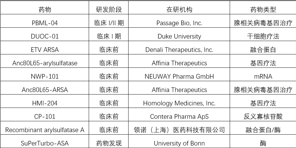 许多临床前潜在药物有望在未来进入临床试验阶段。以下列举了一些MLD研究的最新进展。