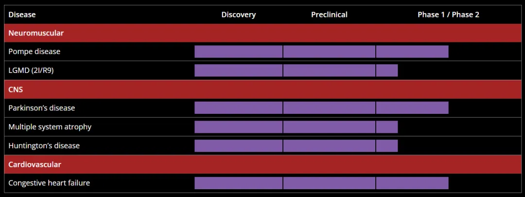 Asklepios BioPharmaceutical, Inc.(AskBio)是拜耳集团的全资和独立运营子公司,也是一家完全专注于基因疗法的公司,致力于开发救命药物和改变患者生活。该公司拥有一系列涵盖神经肌肉、中枢神经系统、心血管和代谢疾病适应症的临床项目,以及处于临床阶段的研发管线,包括充血性心衰、亨廷顿病、肢带型肌营养不良症、多系统萎缩症、帕金森病和庞贝病。