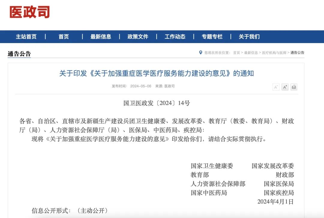 《关于印发加强重症医学医疗服务能力建设的意见的通知》解读