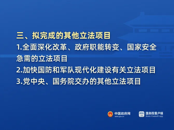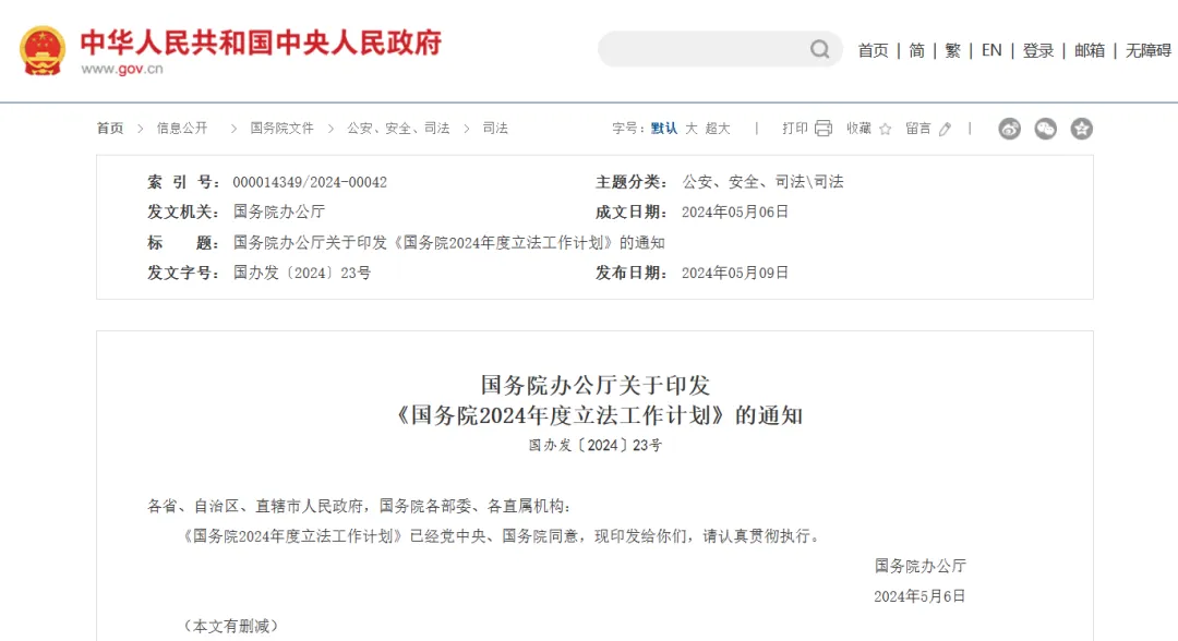 近日,《国务院2024年度立法工作计划》对外公布。根据《工作计划》,2024年,将提请全国人大常委会审议突发公共卫生事件应对法草案等,将预备提请全国人大常委会审议医疗保障法草案、药师法草案、社会救助法草案等,将预备制定生物医学新技术临床研究和转化应用管理条例、社会保险基金监督条例等,将预备修订药品管理法实施条例、全民健身条例等。