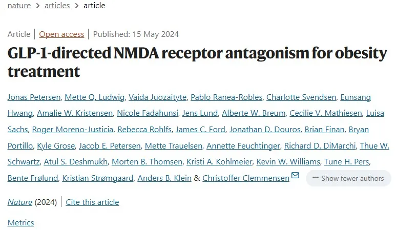 近几年,以司美格鲁肽为代表的胰高血糖素样肽-1(GLP-1)类减重药物在全球爆火,但这些药物价格昂贵,需求量大,且减重效果不一,因此需要开发更多的减重治疗方案。5月16日,丹麦哥本哈根大学诺和诺德基金会基础代谢研究中心的科学家在Nature发布一项关键临床前研究。其开发的一款具有创新双重机制的在研减重药物——GLP-1-MK-801表现出比司美格鲁肽更优异的减重效果,有望为减重领域带来更进一步的突破。