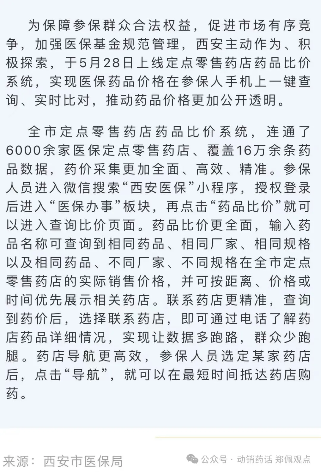 最新!西安上线定点零售药店药品比价系统!