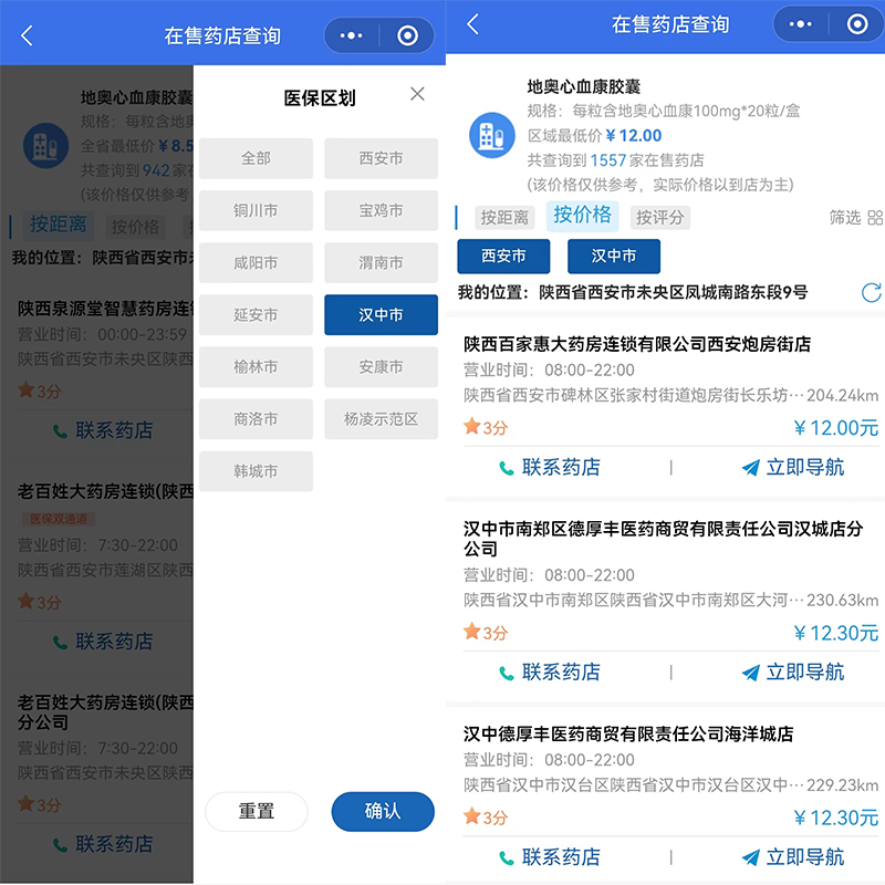 一是药品比价更全面。输入药品名称可查询到相同药品的所有生产厂家、所有规格在全省定点零售药店的实际销售价格,并可按距离、价格或评分筛选及展示相关药店。