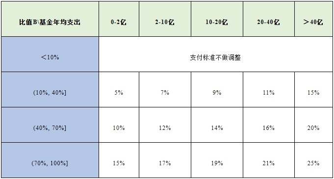 注:比值B=调整支付范围所致的基金支出预算增加值/(Max(原支付范围的基金支出预算,本协议期内实际基金支出))